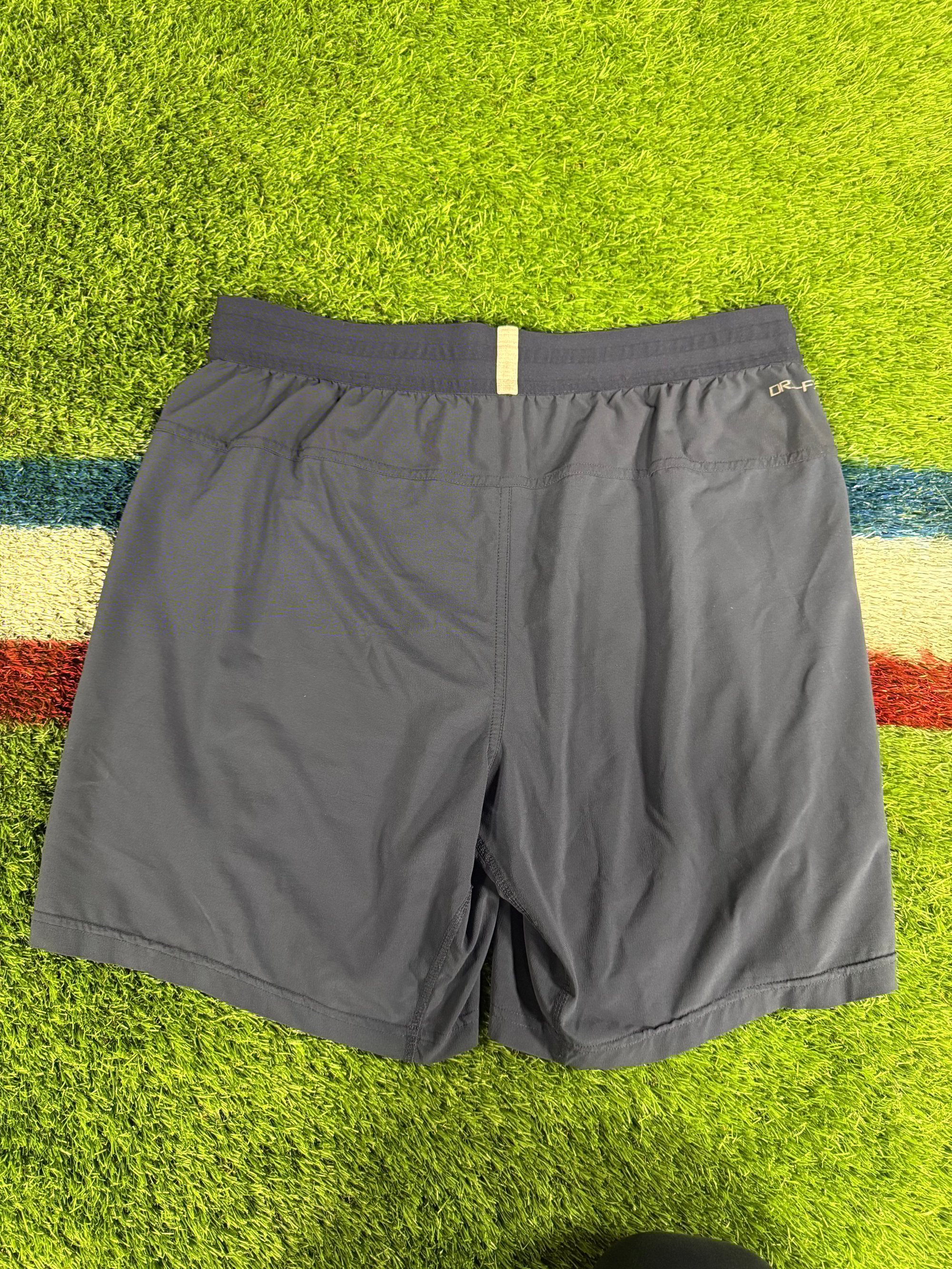 Player worn Nike Dri-Fit team issue NFL Patriots navy and red compression shorts size medium