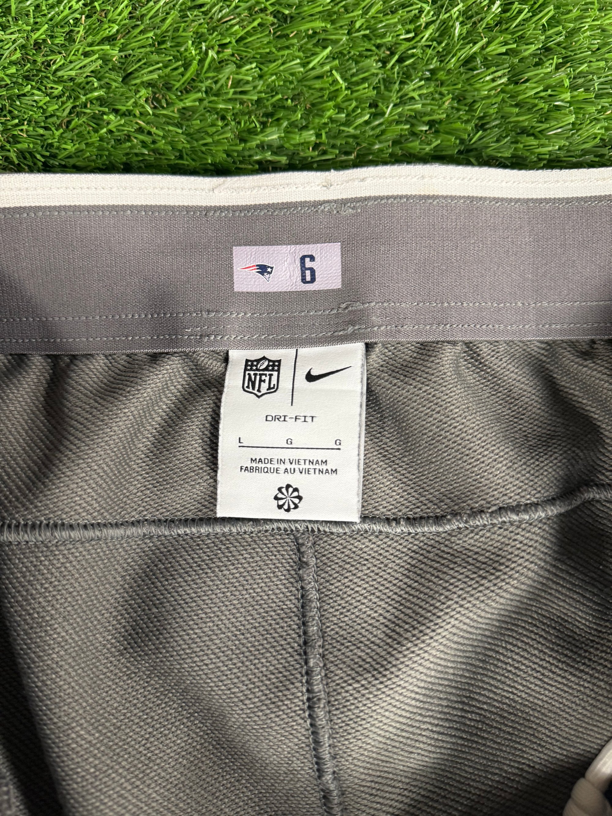 Player worn Nike Dri-Fit team issue NFL Patriots grey sweatpants size large Worn by Javon Baker