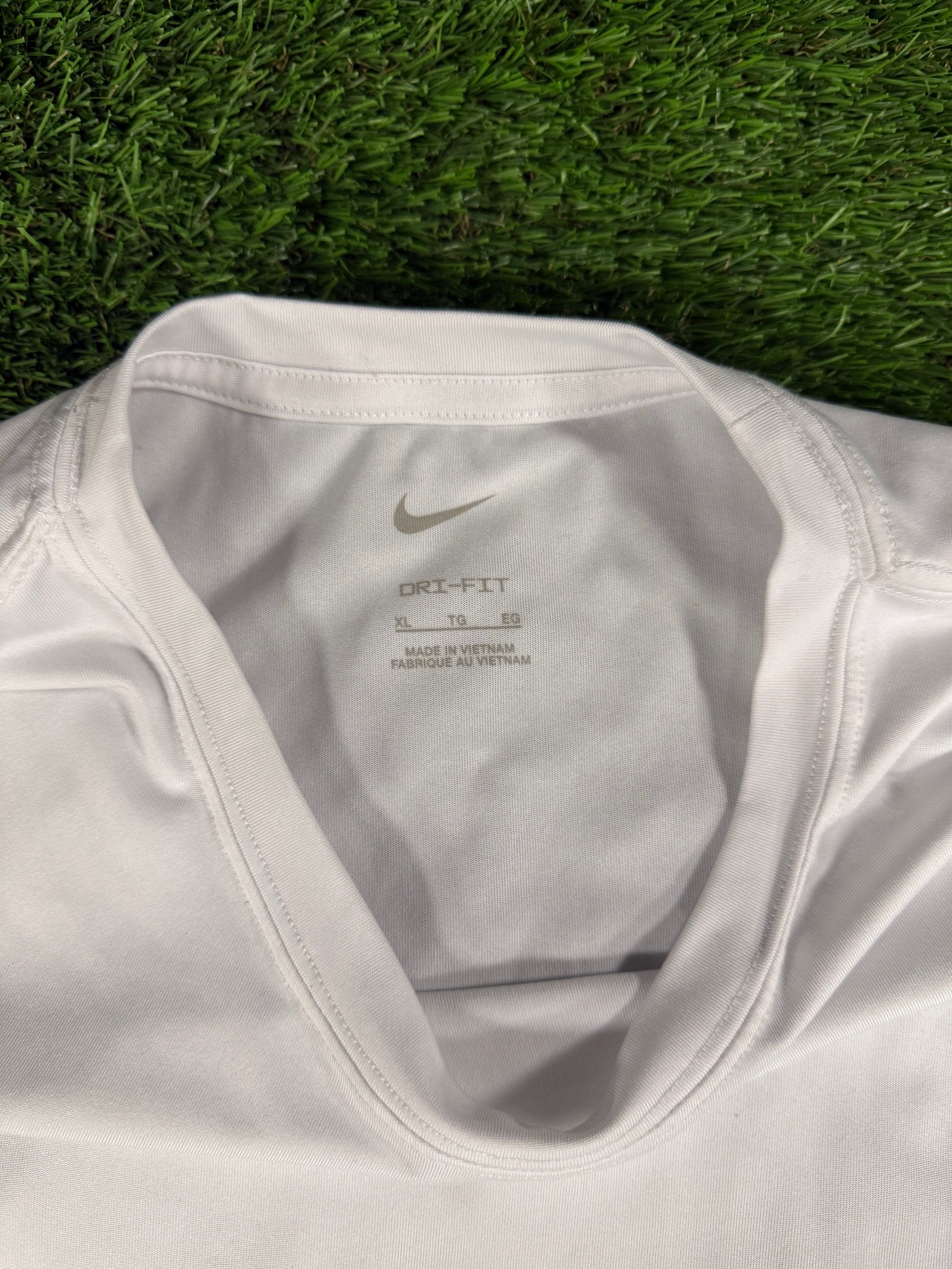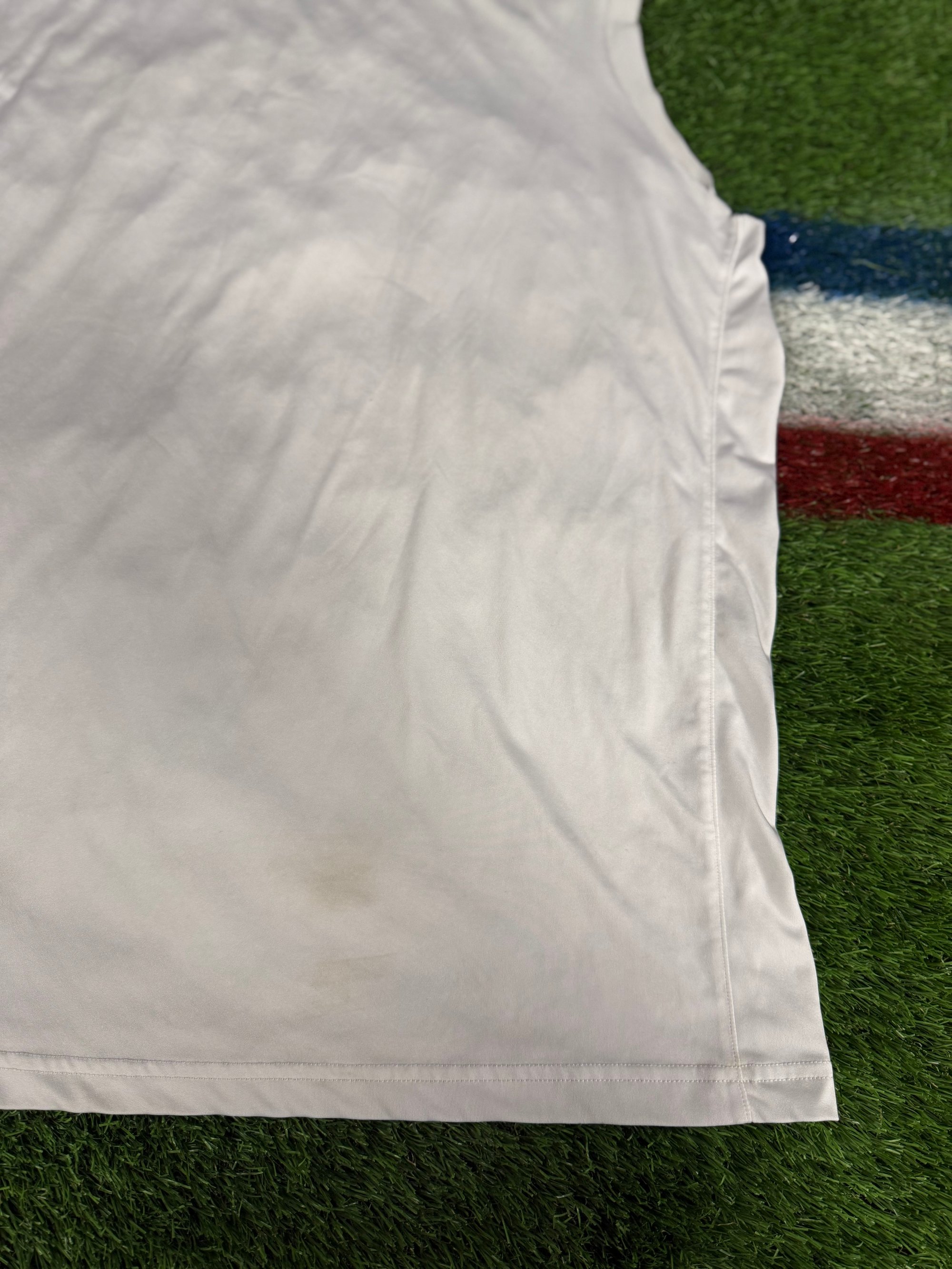 Player worn Nike Dri-Fit team issue white tee with cut off sleeves
